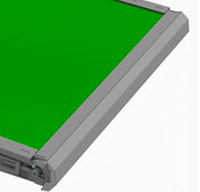 Rampa diseñada para el paso de piezas hacia la mesa de salida, evitando atrapamiento debido a el acercamiento de los operadores hacia el conveyor.