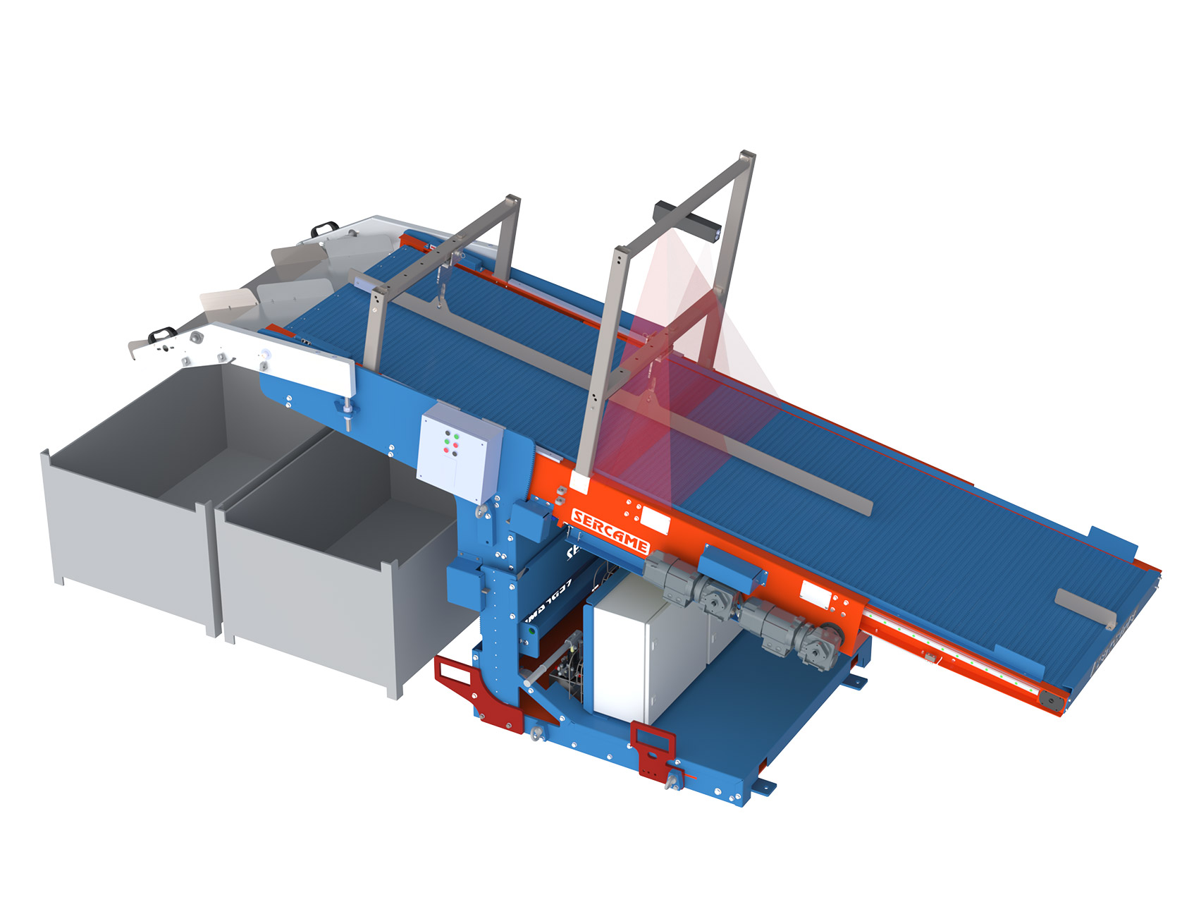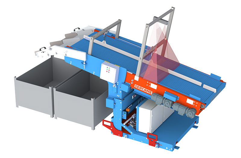 - Eficiencia de producción: Cambio automático de bandeja de descarga, redirigiendo el flujo de piezas entre contenedores sin detener la producción.